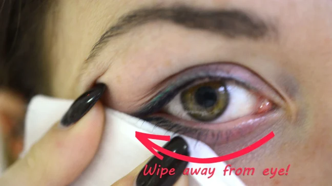 With the client’s eyes still shut, the beautician begins to remove the dye with a cotton pad dampened with water. This might take a few minutes of gentle strokes and several pads. When the excess dye has been removed, the client can open her eyes; the beautician cleans up the under-eye area and the lid with additional dampened pads if there is staining.