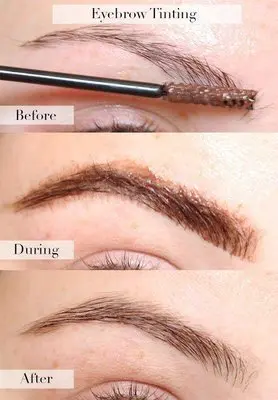 Use a brush to apply the tint on the eyebrow. It helps to get a better application without touching the skin.