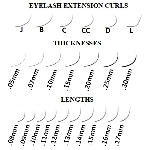 Eyelash extensions come in various types, lengths, colours, curves, and thicknesses from natural-looking to glamorous as well as dramatic. They come in three types of synthetic, silk, and mink lashes. These lashes further have different curls and are selected for clients according to their natural curl. They are J, B, C, and D curls. These lashes vary in thickness from 0.05mm to 0.25mm and in length they vary from 7/8mm to 16mm.